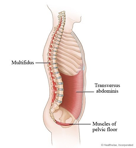For å øke forståelsen av dette kan man stille seg følgende spørsmål: hva er mest stabilt av en tykk trestamme eller en tynn trestamme. Å dra inn magen, såkalt "hollowing" skaper en smalere midje, men en "bracing" der man spenner magen uten å dra den inn (enkel forklaring) skapere en bedre stabilitet (3).