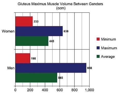 Et interessant studie først presentert på nettsidene til Bret ”The Glute guy” Contreras tar for seg en interessant graf. Studien fra tyske forskere(1) tok for seg størrelsen på setemusklene hos 45 kvinner og menn.