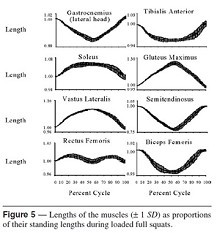 I bunnposisjonen i knebøy er både hoften og kneet flektert (bøyd) mye. Hamstrings to funksjoner er å flektere i kneet og ekstendere hoften. Når hoften og kneet bøyes samtidig vil ikke hamstrings spennes opp i særlig grad fordi den forkortes. Se på bildet under der lengdeforholdet i leggmuskler, og fremsiden og baksiden av låret er målt under en knebøy. Når hamstrings er i en så forkortet stilling har den liten mulighet for å utvikle kraft. Derfor er det også svært lite sannsynlig at hamstrings har noen særlig betydning i utviklingen av posterior tilt av bekkenet under knebøy. Mange opplever at bekkene tilter bakover, og når denne tilten blir stor nok drar bekkenet med seg korsryggen inn i fleksjon. Hamstrings kan definitivt begrense evnene til å anteriort tilte bekkenet og spennet opp ryggen i en markløft, men i en knebøy - not so much.